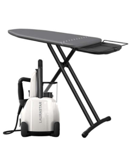 Laurastar Lift White steam station with Laurastar Plus Board Bundle Pack. A true 3-in-1 steam station for home use. Steam garments vertically, iron horizontally & purify your home using “hygienicsteam” The perfect steam station iron with a purpose made ironing board.